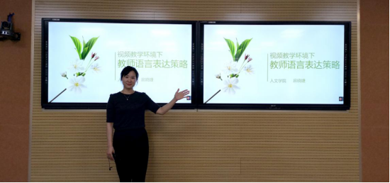 姜楠老师为大家讲讲授“视频教学环境下教师的语言艺术”