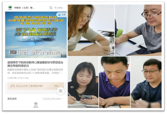 根据学校统一安排,2020年9月15日-17日,网信办计算机基础教研室全体教师积极参加了“疫情常态下的高校教师心理健康疏导与思想政治建设” 专题网络培训。